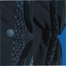 ストレッチ素材と調整ボタンで体にフィット