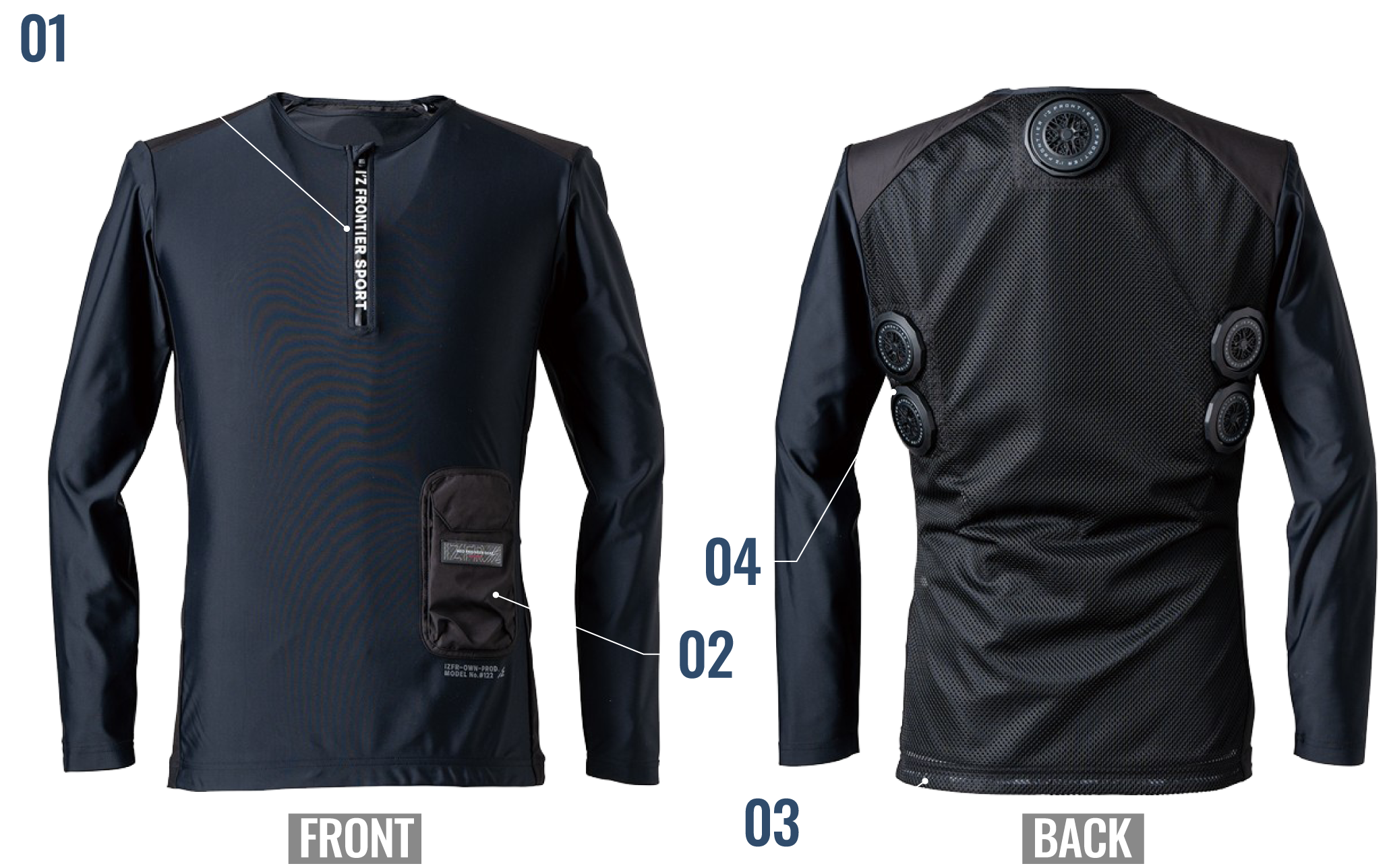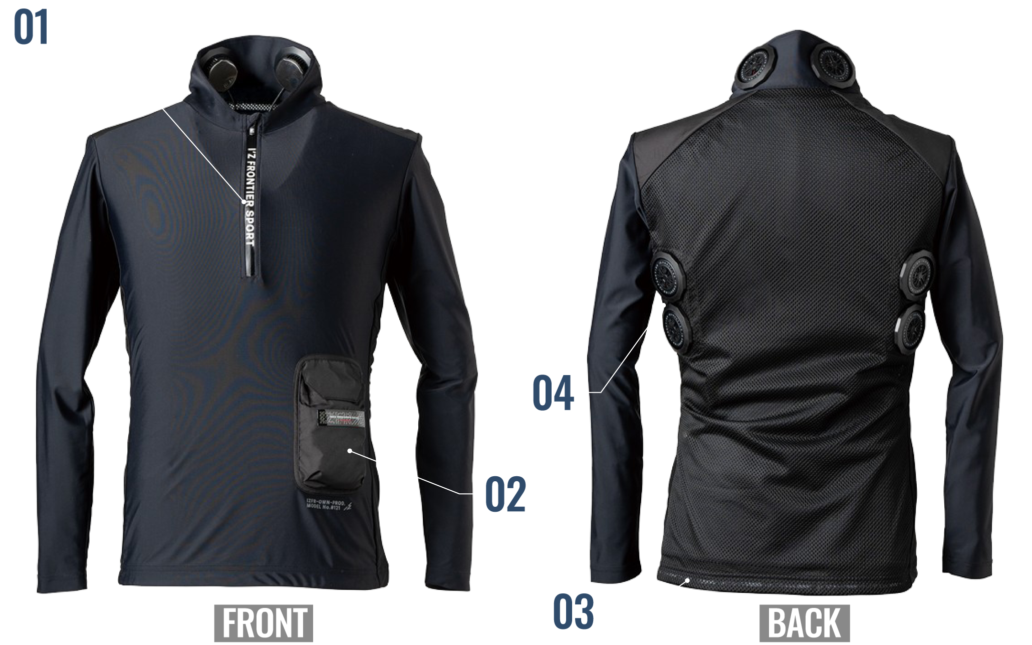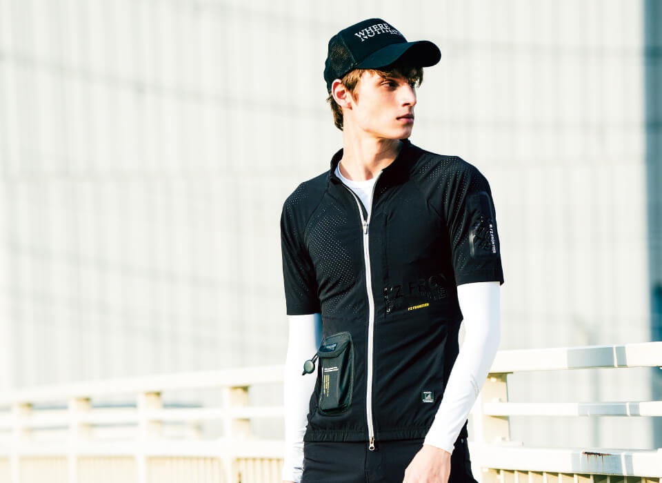Coordinating with our Peltier device compatible compression wear #215 series further improves cooling sensation. It also goes great when layered with fan-equipped clothing for even more comfort.