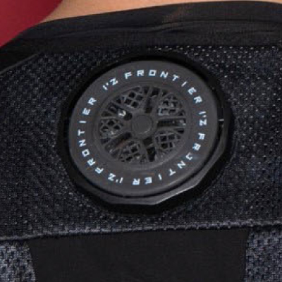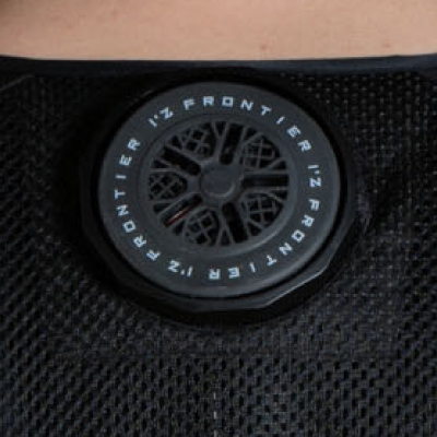 背面の計3ヶ所に直径7cmのペルチェデバイスを装着したニュータイプ冷却ウェア。デバイス接触部位は電源を入れ約10秒で環境温度より最大マイナス約25℃のハイレベルな冷却機能を発揮。動脈を冷やす事により効果的に身体全体をクールダウンさせ、猛暑時の疲労軽減を促し、熱中症対策として期待されます。
