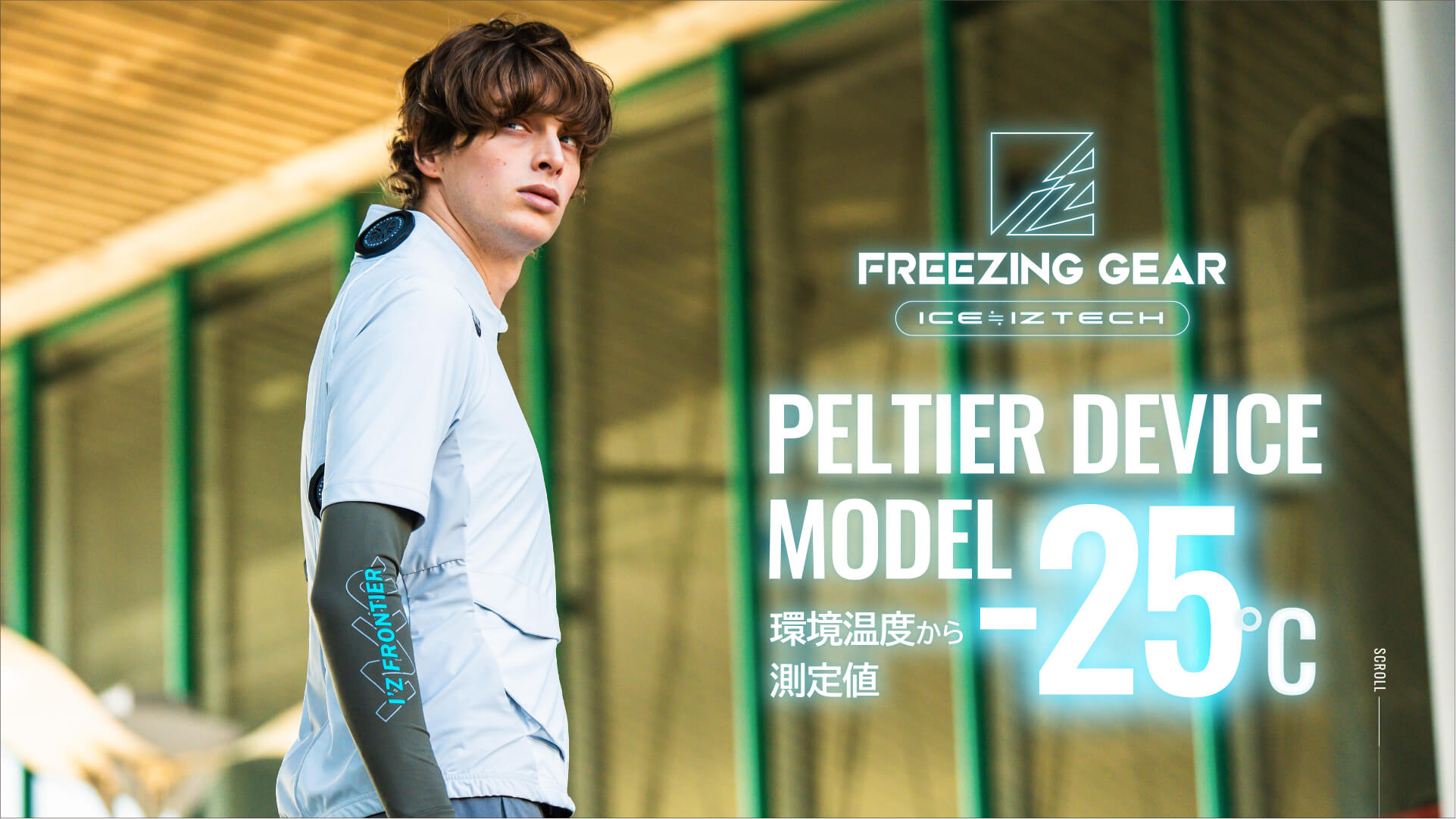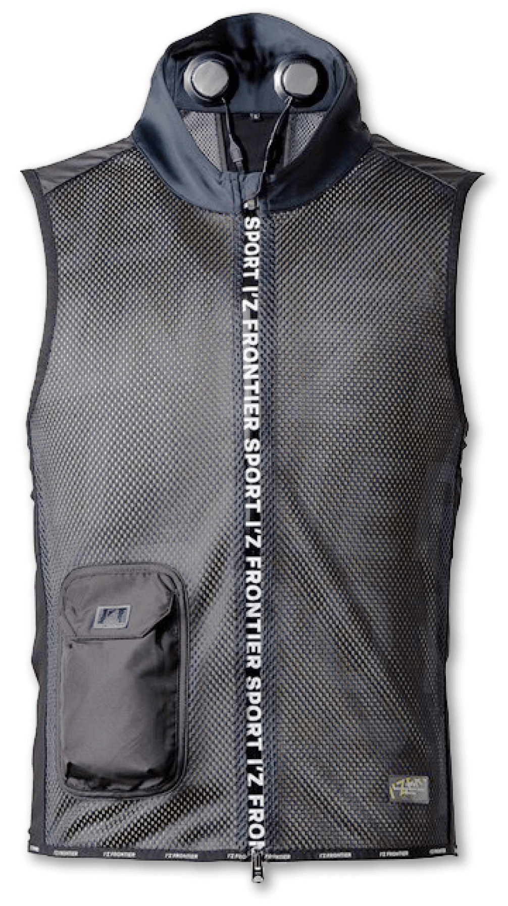 両脇2ヶ所に計4個の直径5cmのペルチェデバイスを装着したニュータイプ冷却ウェア。デバイス接触部位は電源を入れ約10秒で環境温度より最大マイナス約22℃のハイレベルな冷却機能を発揮。動脈を冷やす事により効果的に身体全体をクールダウンさせ、猛暑時の疲労軽減を促し、熱中症対策として期待されます。
